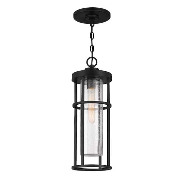 Encompass 19.88 in. 1-Light Midnight Finish Dimmable Outdoor Pendant Light with Seeded Clear Glass, No Bulb Included