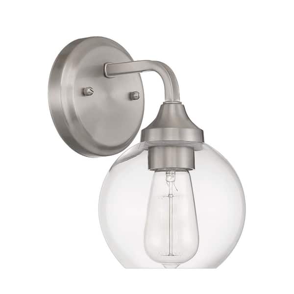 • Classic wall sconce with clear glass globe