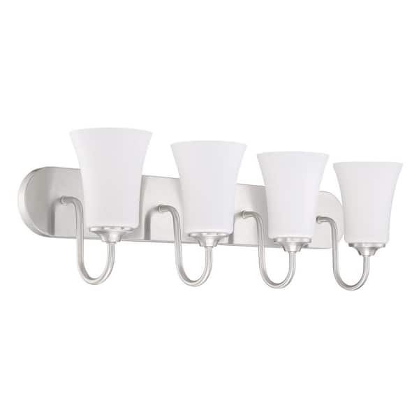Gwyneth 30 in. 4 Light Brushed Polished Nickel Finish Vanity Light with White Frost Glass Shade