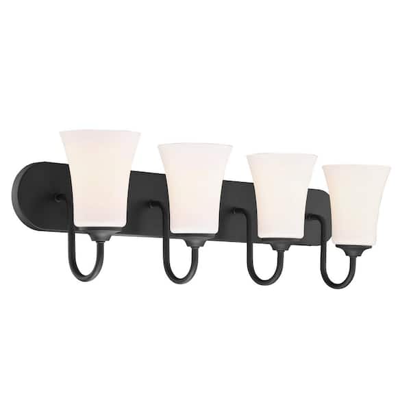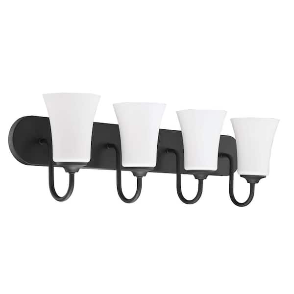Gwyneth 30 in. 4 Light Flat Black Finish Vanity Light with White Frost Glass Shade