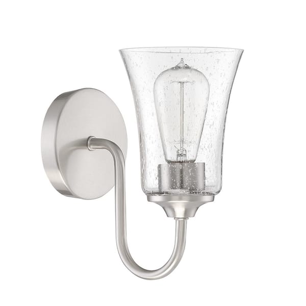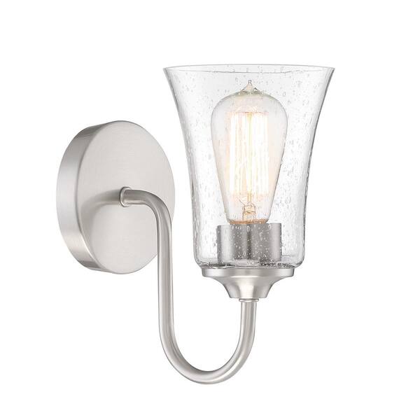 Gwyneth 9.5 in. 1 Light Brushed Polished Nickel Finish Wall Sconce with Clear Seeded Glass