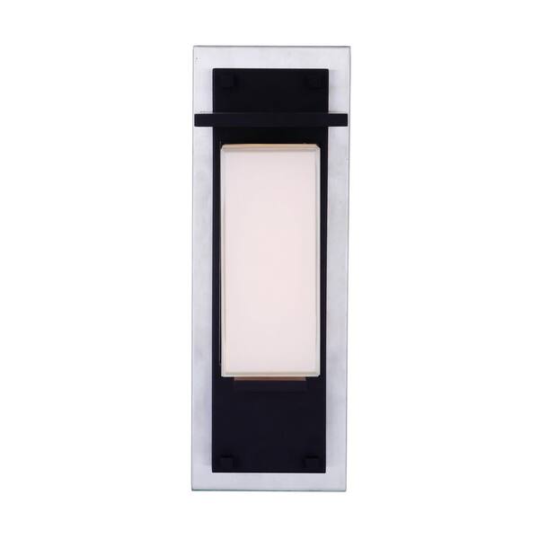 Heights 15 in. Silver / Black Finish Outdoor Hardwired Integrated LED Wall Lantern Sconce w/ Frost Glass