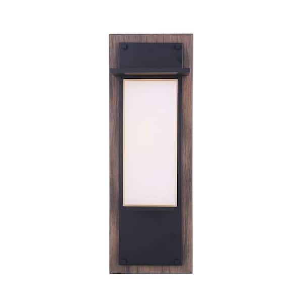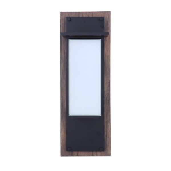 Heights 19.7 in. Whiskey Barrel / Black Outdoor Hardwired Integrated LED Wall Lantern Sconce w/ Frost Glass