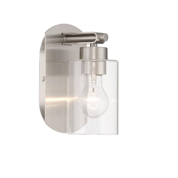 Hendrix 1-Light Brushed Polished Nickel Finish Wall Sconce with Clear Glass Shade