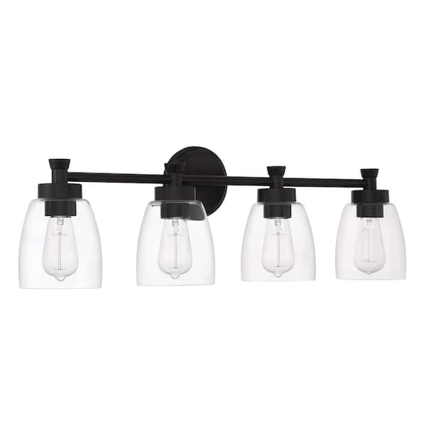 Henning 30 in. 4-Light Flat Black Finish Vanity Light with Clear Glass Shade