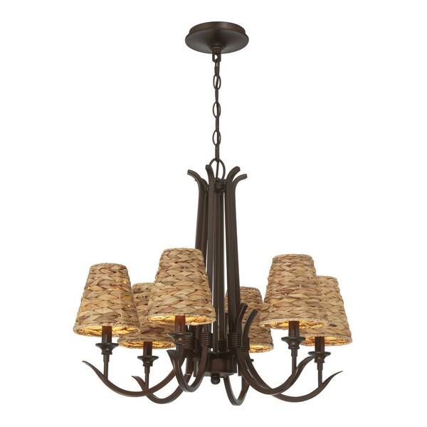 Kokomo 6 Light Aged Bronze Finish Chandelier with Natural Sea Grass Shades for Kitchen Dining Foyer, No Bulb Included