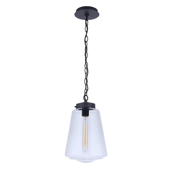 Laclede 15 in. 1 Light Midnight UV Protected Finish Dimmable Outdoor Large Pendant Light w/Clear Glass No Bulb Included