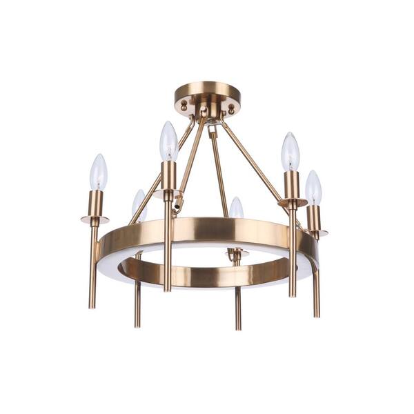 Larrson 17.75 in. 6-Light Satin Brass Finish Transitional Semi Flush Mount Ceiling Light with No Bulbs Included