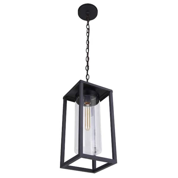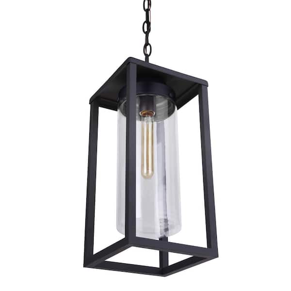 Neo 18 in. 1 Light Midnight Finish Dimmable Outdoor Pendant Light with Clear Glass Shade No Bulbs Included