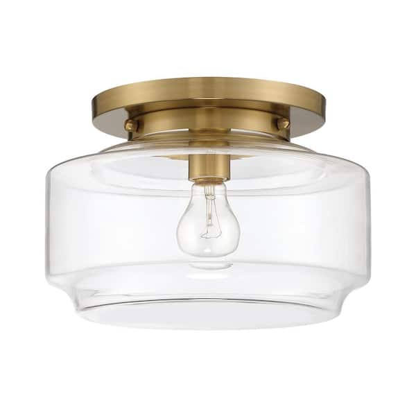 Peri 12 in. 1 Light Satin Brass Finish Transitional Flush Mount with Clear Glass and No Bulbs Included