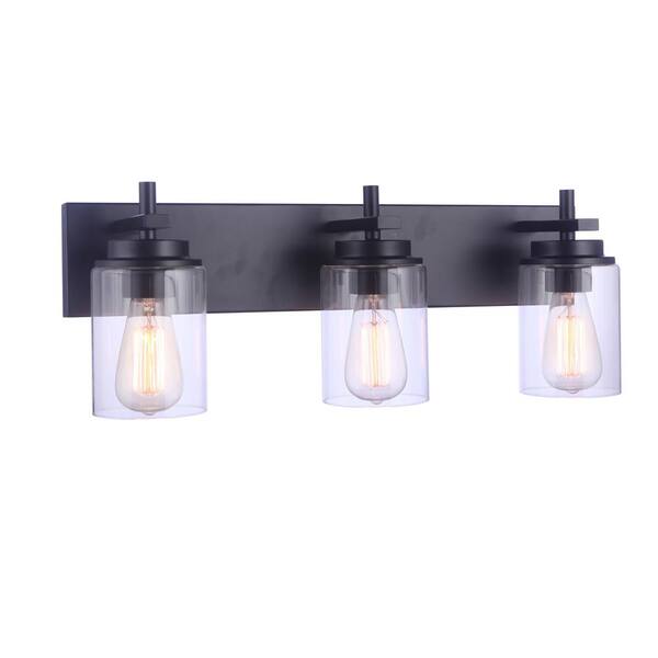 Reeves 23 in. 3-Light Flat Black Finish Vanity Light with Clear Glass Shade