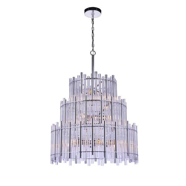 Reveal 13 Light Chrome Finish Chandelier with Clear Acrylic Rods/Shades for Kitchen Dining Foyer, No Bulbs Included