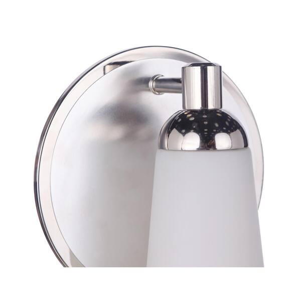 Riggs 9 in. 1 Light Brushed Polished Nickel / Polished Nickel Finish Wall Sconce with White Frosted Glass