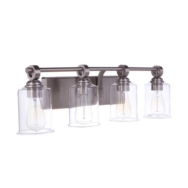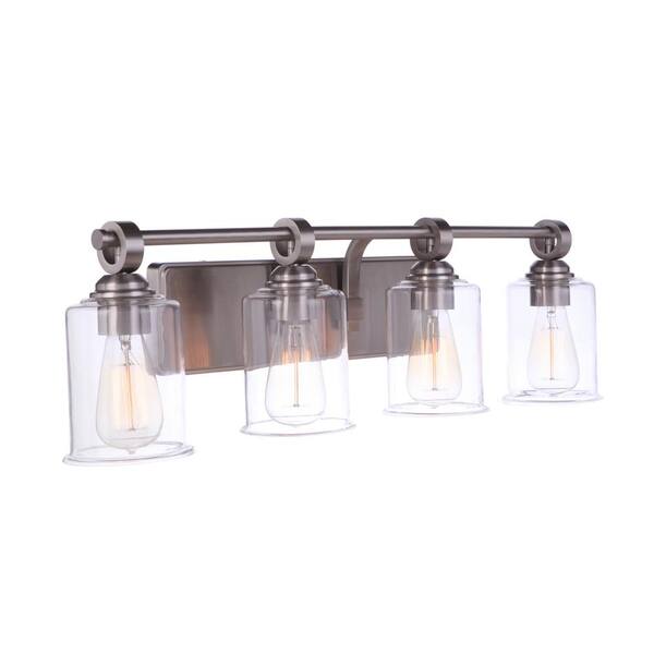 Romero 30.38 in. 4 Light Brushed Polished Nickel Finish Vanity Light with Clear Glass Shade