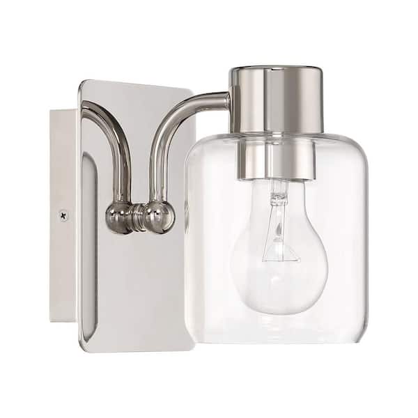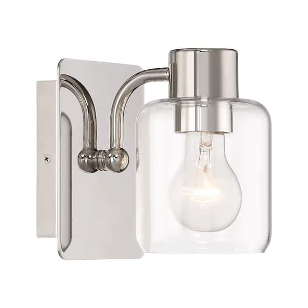 Rori 1-Light Polished Nickel Finish Wall Sconce with Clear Glass Shade