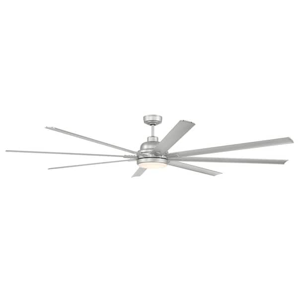 Rush 84 in. Integrated LED Indoor/Outdoor Painted Nickel Finish Hangdown Ceiling Fan, Smart WI-FI Enabled Remote & Light