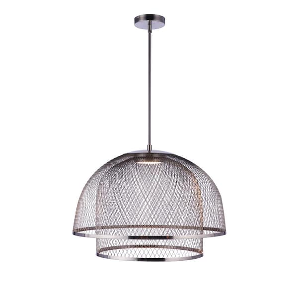 Sculptural Statement Pendants 18-Watt 1-Light Brushed Nickel Integrated LED Pendant Light 2-Shade Metal Mesh Dome