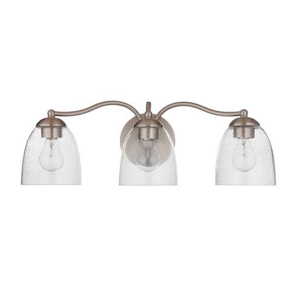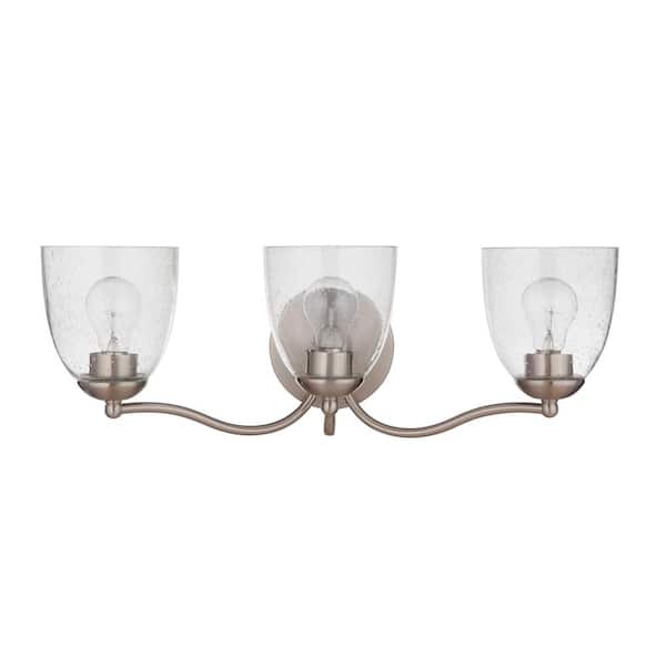 Serene 22.63 in. 3-Light Brushed Polished Nickel Vanity Light with Seeded Glass