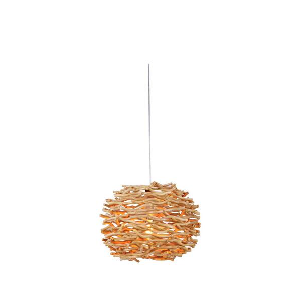 Swag Pendants 60-Watt 1-Light Natural Finish Damp Rated Pendant Light w/Natural Wood Shade, No Bulb Included