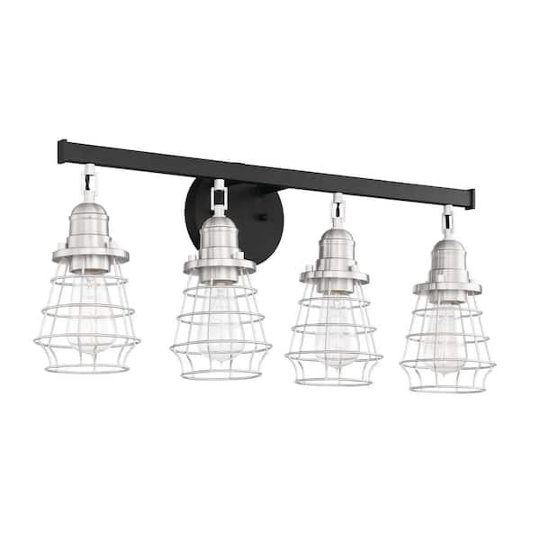 Thatcher 26 in. 4 Light Flat Black/Brushed Polished Nickel Finish Vanity Light with Brushed Nickel Metal Wire Shade