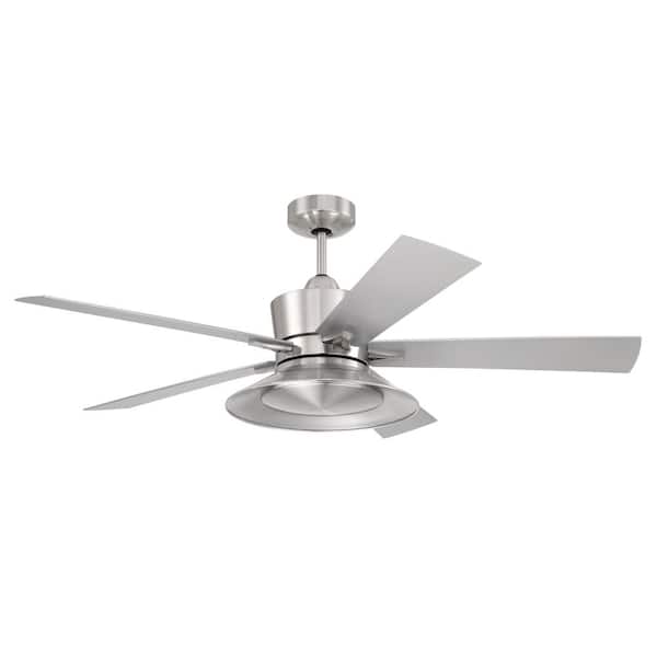 Topper 52 in. Indoor Brushed Polished Nickel Ceiling Fan with Smart Wi-Fi Enabled Remote and Integrated LED Light Kit