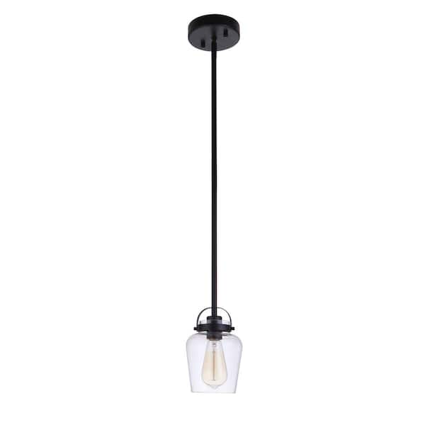 Trystan 60-Watt 1-Light Flat Black Finish Dining/Kitchen Island Mini Pendant Light with Clear Glass, No Bulbs Included