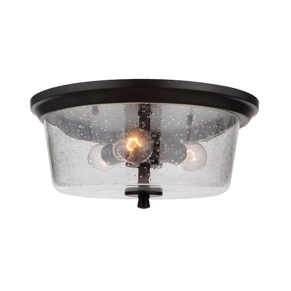 Tyler 15 in. 3 Light Flat Black Finish Transitional Flush Mount with Clear Seeded Glass and No Bulbs Included