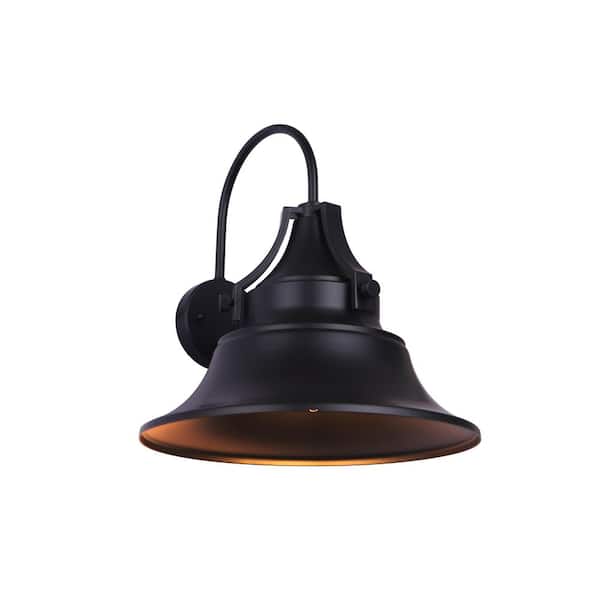 Union 16.25 in. Black Finish Outdoor Hardwired Wall Lantern Sconce w/ Black Shade, No Bulb Included