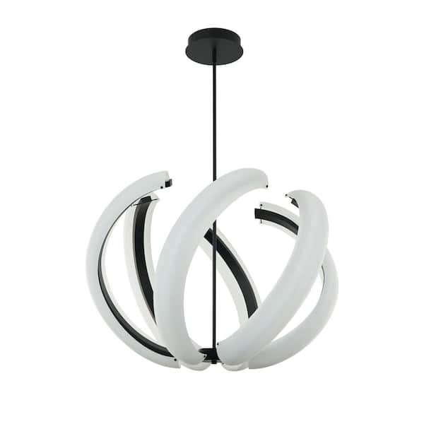 Unwind Large 122.4-Watt 1-Light Flat Black Finish Dining/Foyer Integrated LED Pendant-Light with Frost Acrylic Shade