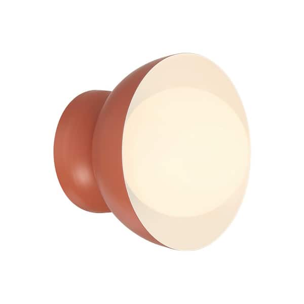 Ventura Dome 1-Light Baked Clay Finish Open Faced Wall Sconce with White Frost Glass Globe