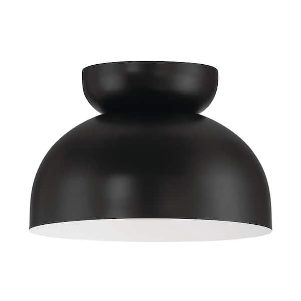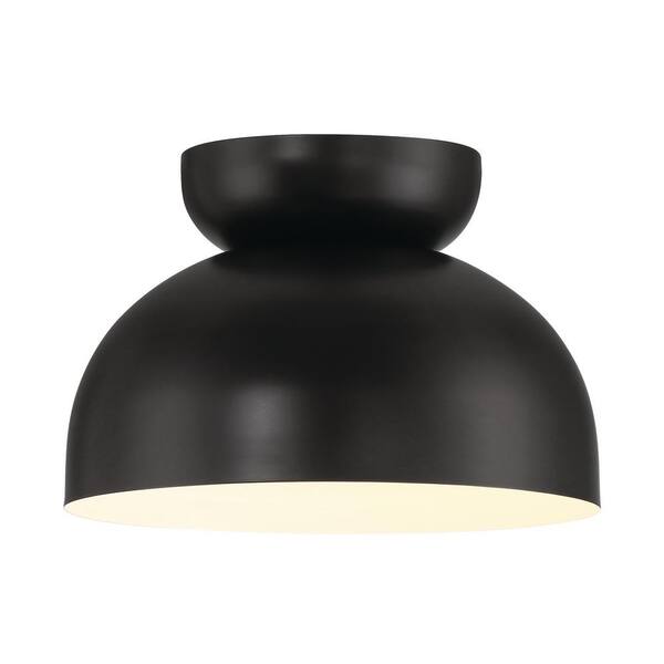 Ventura Dome 10.5 in. 1 Light Flat Black Finish Flush Mount w/ White Frosted Globe and Steel Frame, No Bulbs Included