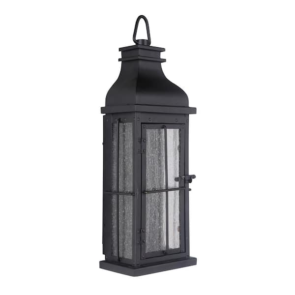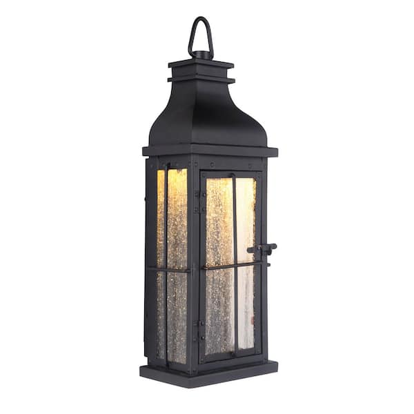 Vincent 17 in. Black Finish Outdoor Hardwired Integrated LED Wall Lantern Sconce w/ Clear Seeded Glass
