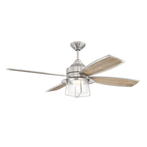Waterfront 52 in. Integrated LED Indoor Dual Mount Brushed Polished Nickel Ceiling Fan Light Remote and Wall Control