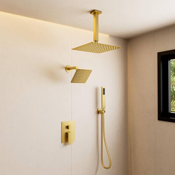 Crozet 1-Handle 3-Spray Ceiling Mount Dual Shower Head Handheld Shower Head 2.5 GPM in Brushed Gold (Valve Included)