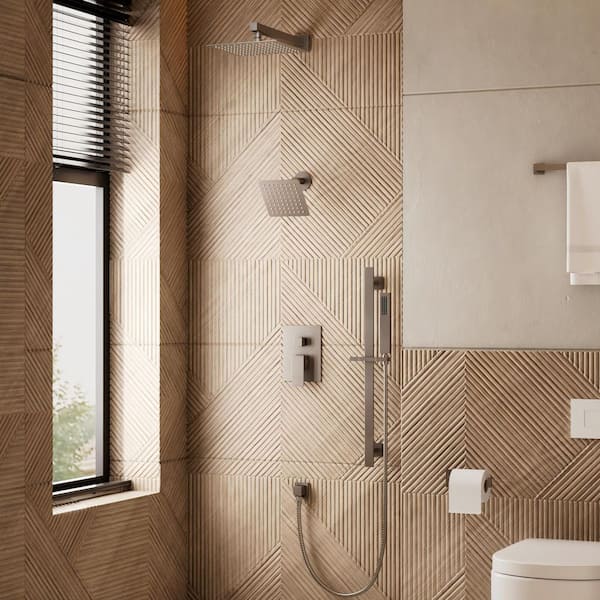 Crozet 3-Spray 10 in. Wall Mount Dual Fixed and Handheld Shower Head Shower Faucet Hand Shower 2.5 GPM in Brushed Nickel