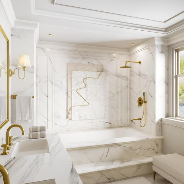 Crozet 3-Spray Wall Mount Tub and Handheld Shower Head Shower Faucet 2.5 GPM in. Brushed Gold (Valve Included)