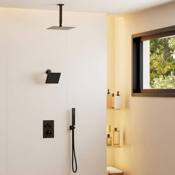 Crozet Thermostatic 7-Spray Ceiling Mount Dual Fixed and Handheld Shower Head Shower Faucet 2.5 GPM in Matte Black