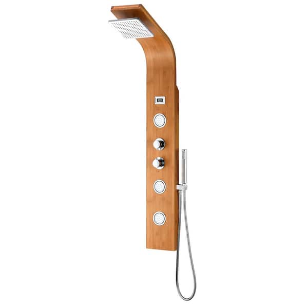 CRANE Series 60 in. 3-Jetted Full Body Shower Panel System with Heavy Rain Shower and Spray Wand in Natural Bamboo