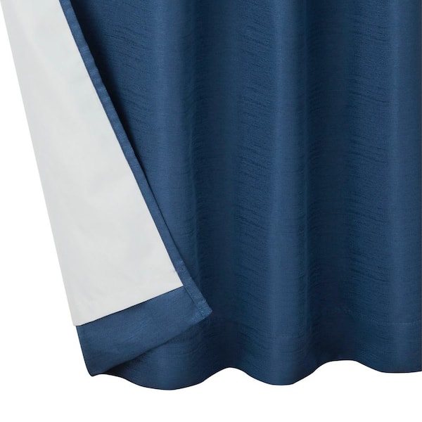 Tobie Navy Jacquard Polyester 38 in. W x 84 in. L Back Tab Blackout Curtain (2-Panels with 2-Tiebacks)