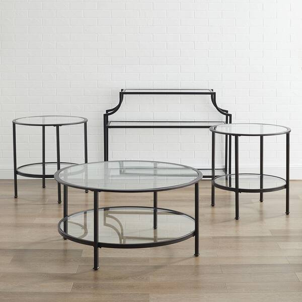 Aimee 4-Piece Oil Rubbed Bronze Round Glass Coffee Table Set with Shelf