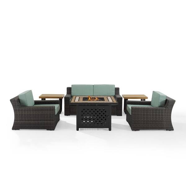 Beaufort 6-Piece Wicker Patio Fire Pit Seating Set with Mist Cushions