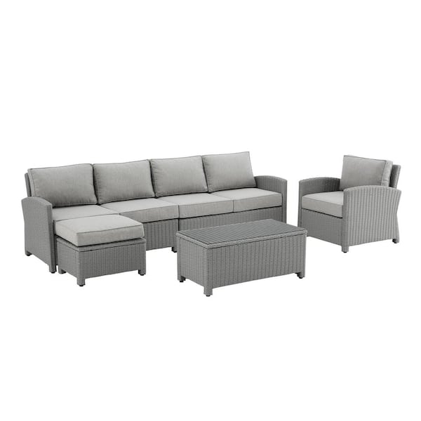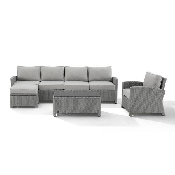 Bradenton Gray 5-Piece Wicker Outdoor Sectional Set with Gray Cushions