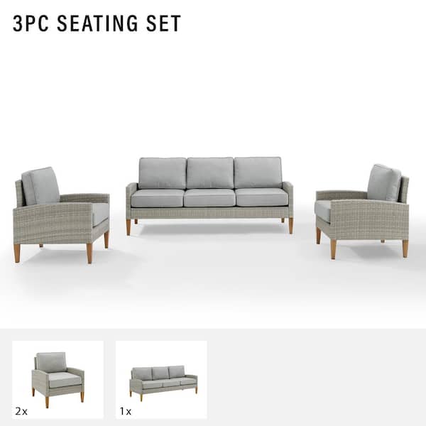 Capella 3-Piece Wicker Patio Conversation Set with Gray Cushions