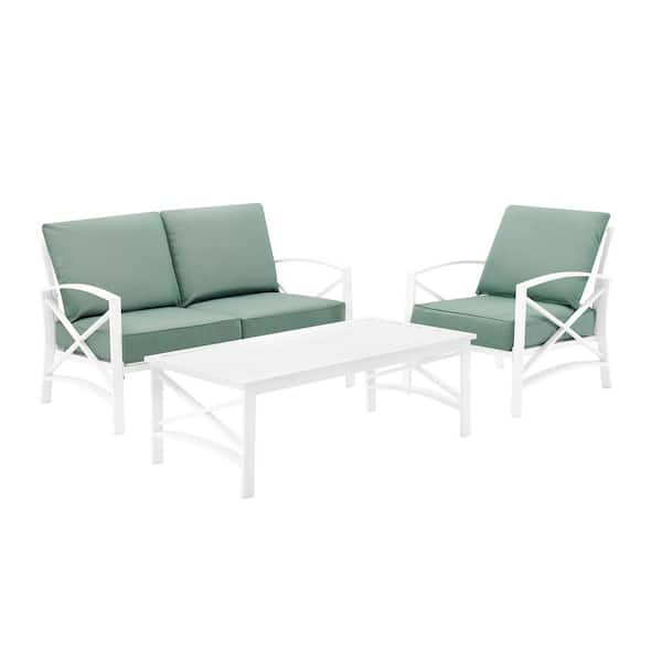 Kaplan White 3-Piece Metal Patio Conversation Set with Mist Cushions