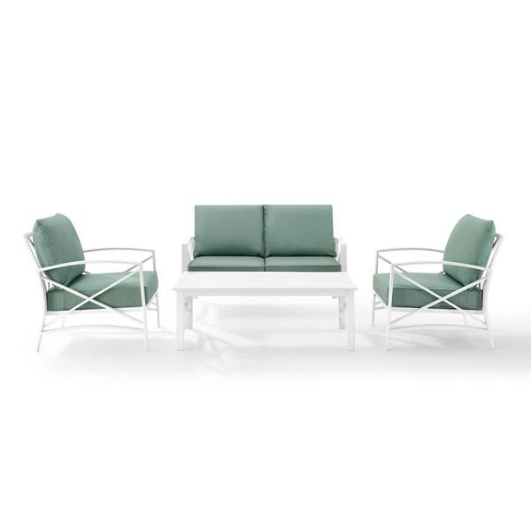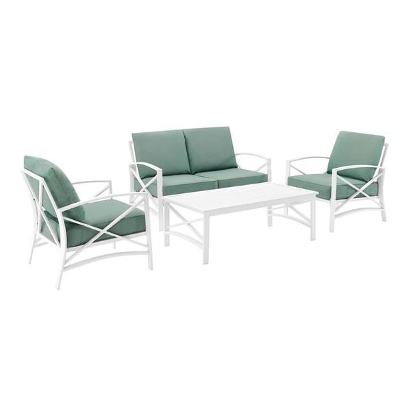 Kaplan White 4-Piece Metal Patio Conversation Set with Mist Cushions