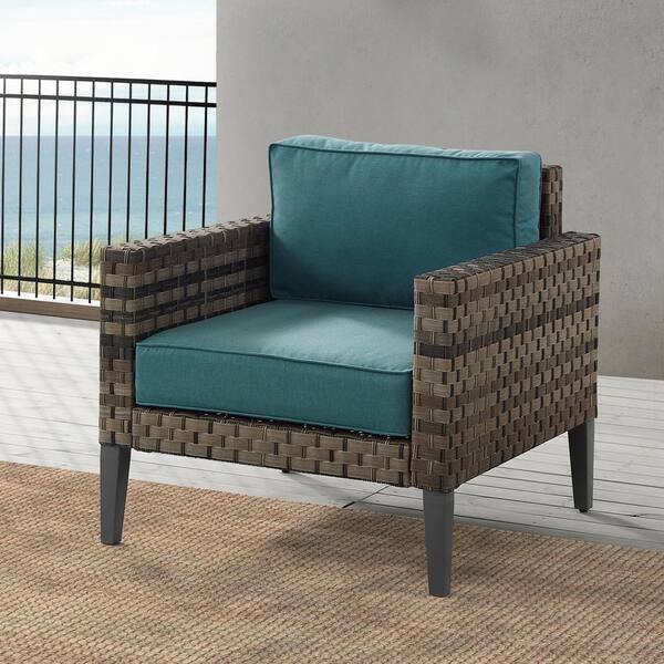 Prescott Brown Wicker Outdoor Lounge Chair with Mineral Blue Cushions