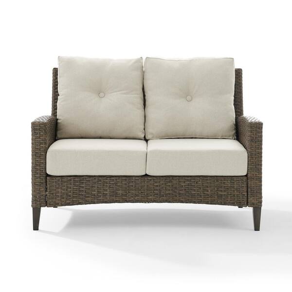 Rockport Wicker Outdoor Loveseat with Oatmeal Cushions
