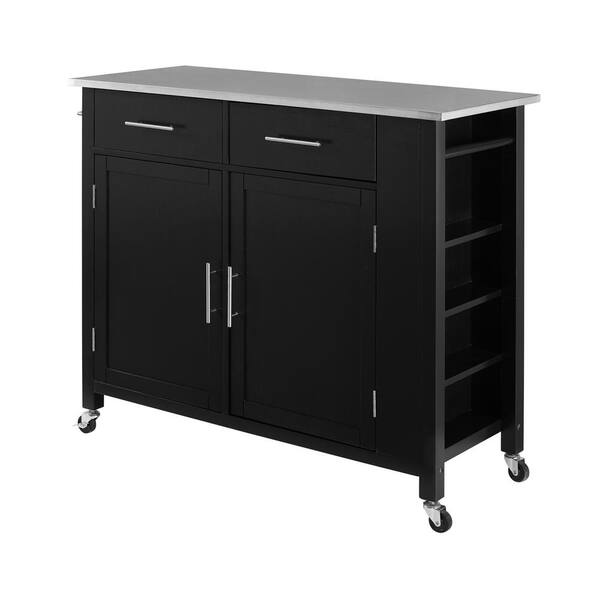 Savannah Black with Stainless Steel Top Full-Size Kitchen Island