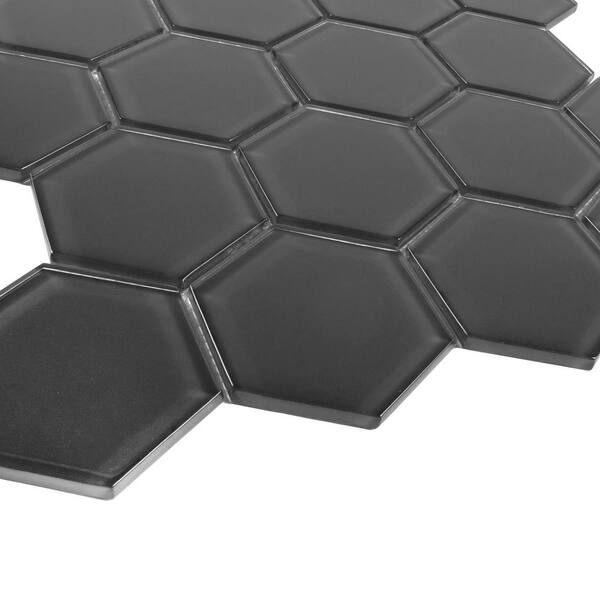 3 in. Beehive 10.25 in. x 11.75 in. Hexagon Carbon Gloss Glass Mesh-Mounted Mosaic Tile (9.13 sq. ft./Case)