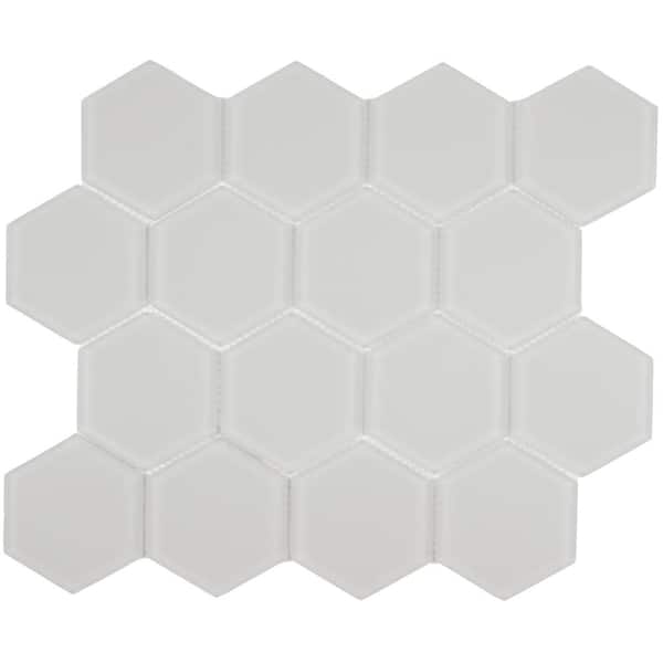 3 in. Beehive 10.25 in. x 11.75 in. Hexagon Misty Grey Matte Glass Mesh-Mounted Mosaic Tile (9.13 sq. ft./Case)